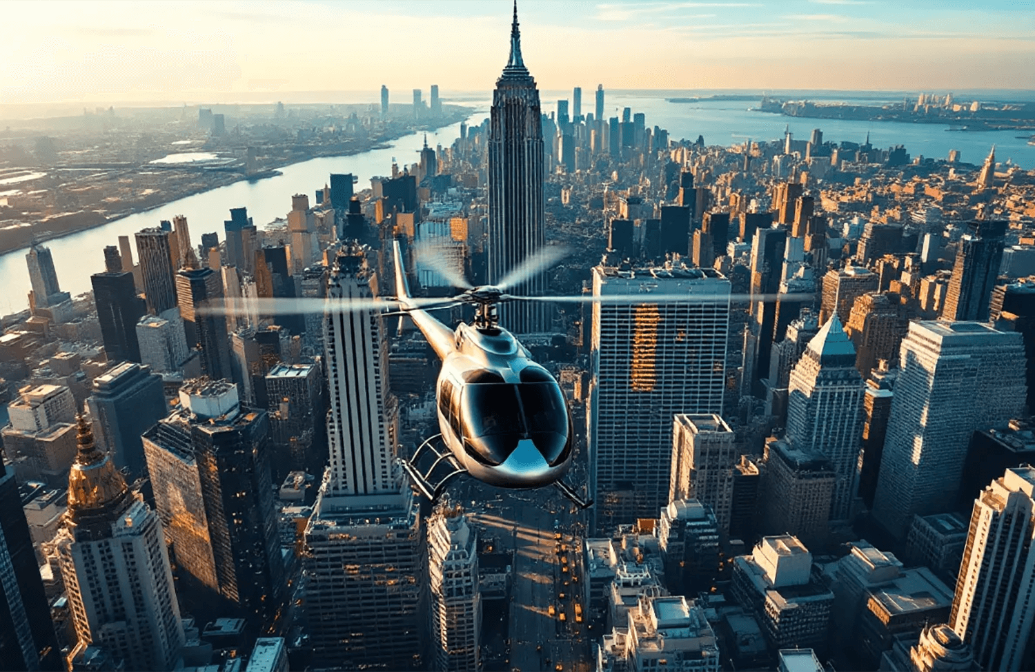 Private Helicopter Flight Over Manhattan at Sunset